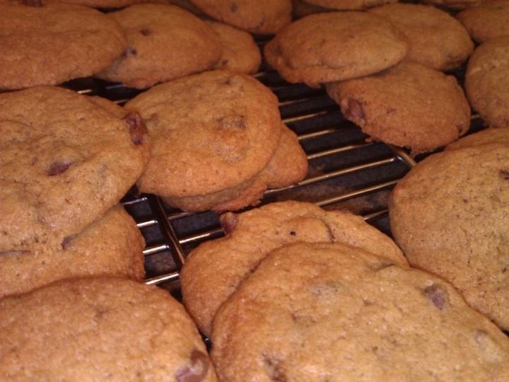 Madeline and I made chocolate chip cookies for her party tomorrow. We are celebrating her birthday because her December party was snowed out. The smell of freshly baked cookies reminds me of my childhood and despite no longer being able to eat them, is still one of my favourite smells, alongside cut grass, Mom’s homemade bread and lilac.