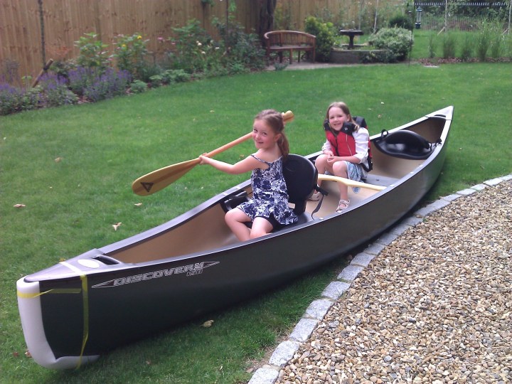 Uncategorized August 12: Practice Our new canoe was delivered today and after a morning of swimming, Ellie and Maddie tried it out in the front garden. Share this: Click to share on Facebook (Opens in new window) Facebook Click to print (Opens in new window) Print Click to email a link to a friend (Opens in new window) Email Click to share on X (Opens in new window) X Like Loading...